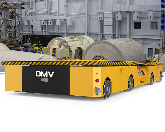 OMV重載部件轉(zhuǎn)運設(shè)備利用麥克納姆輪實現(xiàn)零回轉(zhuǎn)半徑、側(cè)移、全方位無死角任意漂移,適用于重載設(shè)備及物件的狹小空間運輸,通過輪組大小,數(shù)量的搭配,可以設(shè)計定制10噸--50噸載重的平臺。