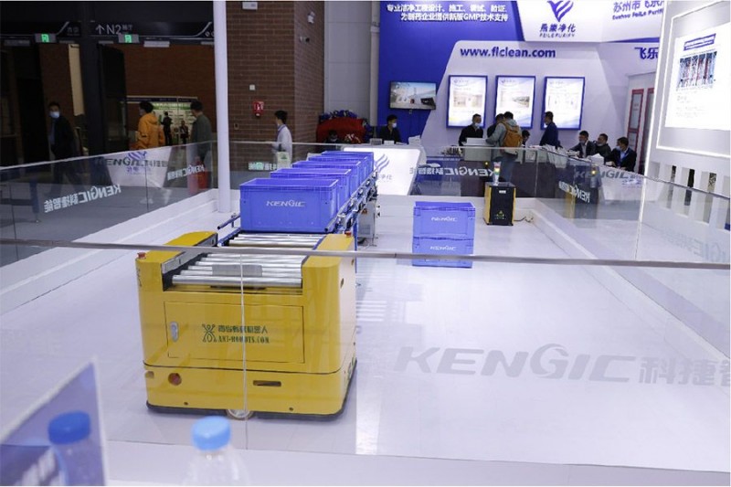 螞蟻機器人在此次展會現(xiàn)場進行無人化自主搬運的動態(tài)演示:在調(diào)度系統(tǒng)的指揮下,螞蟻自主研發(fā)的激光SLAM輥筒式料箱AGV自動搬運料箱與生產(chǎn)線對接,自動配送過程中能夠高效精準對接搬運線體,同時演示現(xiàn)場設(shè)置障礙物,AGV能夠自動識別障礙,避障繞行,完成貨物的實時運輸。螞蟻機器人的高效對接和精準避障滿足了醫(yī)藥行業(yè)在藥品種類多和環(huán)境復(fù)雜的背景下對安全頻繁轉(zhuǎn)運的配送需求。