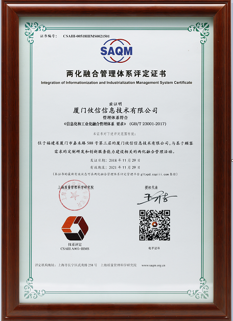 發證機構:   上海質量管理研究院 發證時間 :   2018-11-29