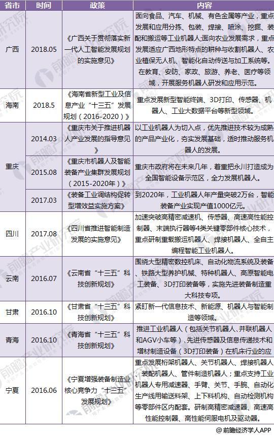 截至2018年31省市機(jī)器人政策匯總及解讀
