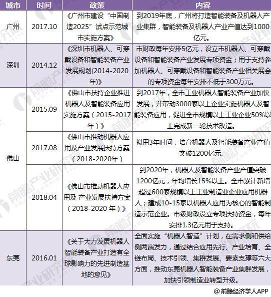 截至2018年,有14個地級市出臺機(jī)器人產(chǎn)業(yè)發(fā)展和加大科研投入建立智能型機(jī)器人研發(fā)機(jī)構(gòu)的相關(guān)政策和獎勵機(jī)制,包括廣州、佛山、東莞、嘉興、泉州、長沙等。