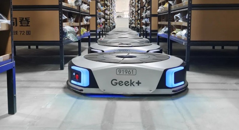 ▲ 極智嘉揀選機(jī)器人在波司登倉(cāng)庫(kù)中運(yùn)行