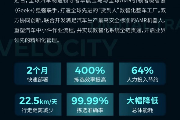 全球AMR引領者極智嘉(Geek+)近日與歐洲知名電商交付解決方案提供商Paack達成合作,為其在西班牙馬德里的配送中心成功部署超27...
