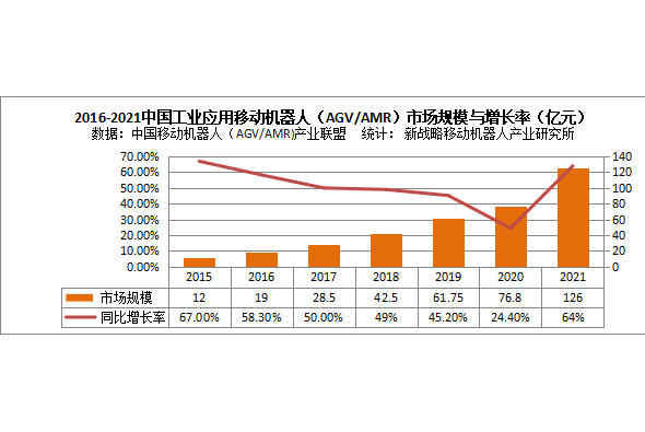 2021年光伏行業(yè)AGV/AMR占整體市場5.2%,銷售量約為3500臺(tái),規(guī)模為6億元。