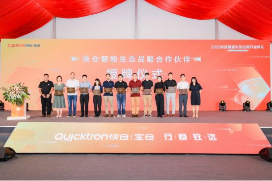 圖:快倉智能聯(lián)合創(chuàng)始人兼CTO倪菲介紹“鴻鵠”C56機器人產(chǎn)業(yè)協(xié)同,構(gòu)建移動機器人生態(tài)圈行業(yè)發(fā)展離不開產(chǎn)業(yè)鏈上下游的協(xié)同,快倉智能也正積極聯(lián)合上下游不同領(lǐng)域企業(yè),一起構(gòu)建移動機器人生態(tài)圈。在2022年度戰(zhàn)略生態(tài)伙伴授牌儀式上,快倉智能為激光雷達、減速機、驅(qū)動器、芯片等多個領(lǐng)域的合作伙伴頒發(fā)獎牌,未來,快倉智能將立足于自身產(chǎn)品技術(shù),以開放共贏的態(tài)度與生態(tài)圈企業(yè)聯(lián)合,更好的賦能終端應(yīng)用客戶。