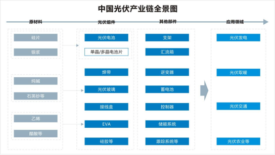 光伏產業的擴產風潮給設備廠商帶來了巨大的機遇,光伏產業鏈中,上游為原材料,主要包括硅片、銀漿、純堿、石英砂等;中游為光伏電池板及光伏組件生產;下游為光伏的應用領域,光伏主要用來發電,還可以代替燃料用來取暖等。