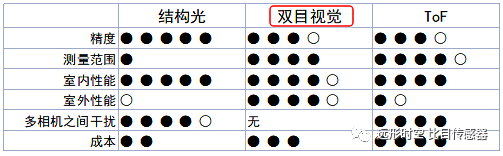 綜合到移動機(jī)器人在非結(jié)構(gòu)化場景中的應(yīng)用,對照上表的性能對比可以看到主動雙目深度相機(jī)無疑是最好的選擇。首先雙目原理兼顧了室內(nèi)室外場景,避免了多機(jī)的干擾,對于環(huán)境具有最高的適應(yīng)性;同時在測量范圍和測量精度上也具有非常好的性能兼顧;最后雙目系統(tǒng)可以非常好地平衡成本,做到價格可控。