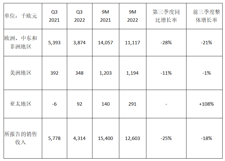 無人叉車企業(yè)BALYO宣布其2022年第三季度的銷售額為430萬歐元,比2021年第三季度下降25%;截至2022年9月30日,營收達(dá)1260萬歐元;積壓訂單強(qiáng)勁增長至1330萬歐元,與2021年9月30日相比增長+29%;2022年第三季度的訂單量為600萬歐元,與2021年第三季度相比略有下降。BALYO的首席執(zhí)行官Pascal Rialland表示,"BALYO基于商業(yè)和運(yùn)營獨(dú)立性的新商業(yè)模式的實(shí)施仍在進(jìn)行中。第三季度的收入受到了一些關(guān)鍵部件供應(yīng)問題的影響,其影響超過了100萬歐元。關(guān)于我們的訂單量,特別是直接訂單,盡管收到的訂單數(shù)量增加,但業(yè)績低于我們的預(yù)測。然而,我們對未來的增長仍然充滿信心,這將得到穩(wěn)定增長的銷售管道的支持,無論是在質(zhì)量還是歐元價值方面。最有活力的地理區(qū)域仍然是美國,公司在那里不斷投資其銷售團(tuán)隊(duì)。2022年最后一個季度的收入應(yīng)受益于追趕效應(yīng),鑒于供應(yīng)方面的持續(xù)不確定性,現(xiàn)階段仍難以評估。"