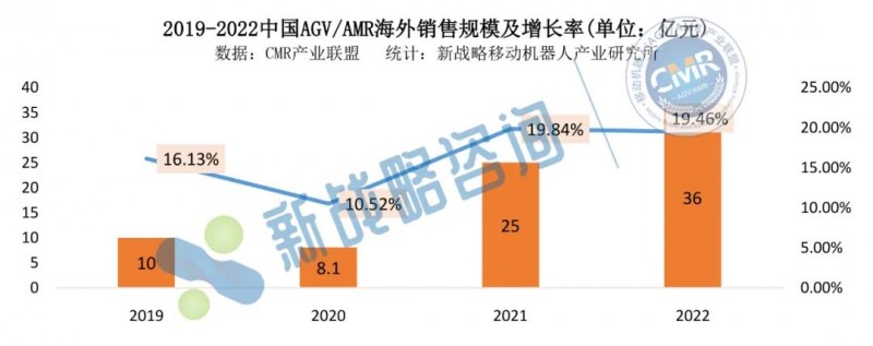 從2019年中國AGV/AMR海外銷售額首次突破10億人民幣到2022年的36億人民幣,不少企業的海外銷售占比得到較大提升,這也表明走向國際市場成為行業發展趨勢,同時中國企業的產品在全球市場的影響力逐步提升。