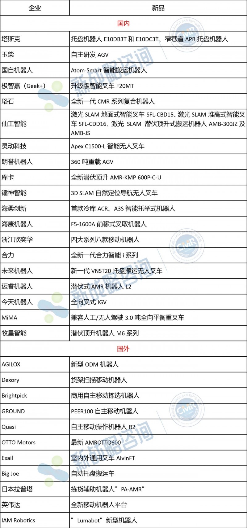 圖表:上半年AGV/AMR行業新品(不完全統計)