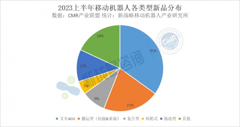 根據CMR產業聯盟數據,新戰略移動機器人產業研究所不完全統計,2023年上半年,國內外移動機器人企業推出AGV/AMR新產品近50款,類型豐富!