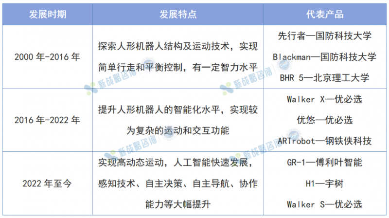 相比日美等發達國家,中國加入人形機器人賽道較晚。2000年,國防科技大學成功研制出中國第一臺兩足步行人形機器人“先行者”。“先行者”可以模擬人類行走,且具備一定的語言功能。此后,國內的高校和科研機構不斷進行相關技術探索,在運動控制、感知識別和智能化方面取得了一些進展。2016年,優必選開始研發大型人形機器人,并于2018年推出Walker第一代。Walker是中國首臺可商業化人形雙足機器人,在五年內歷經四次迭代,具有高度的運動靈活性和智能交互能力。