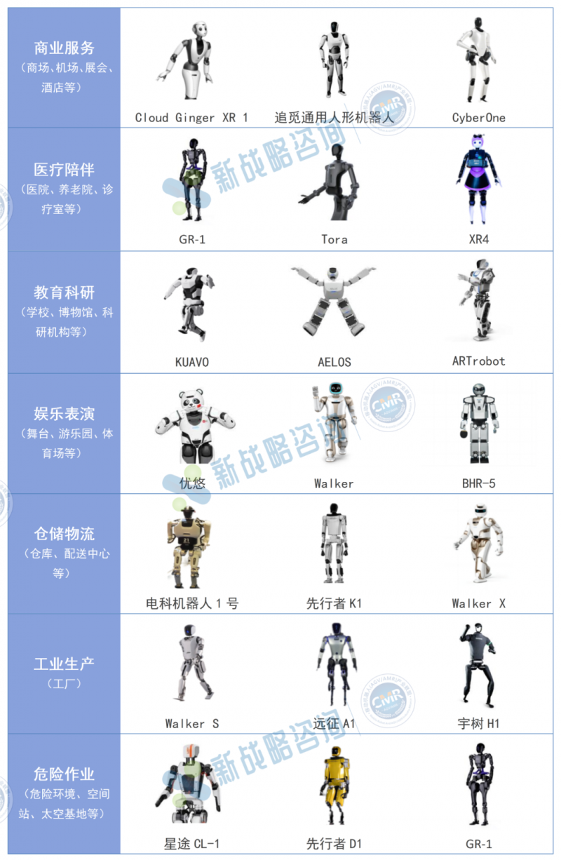 注:圖中多款人形機器人可用于多個應用場景