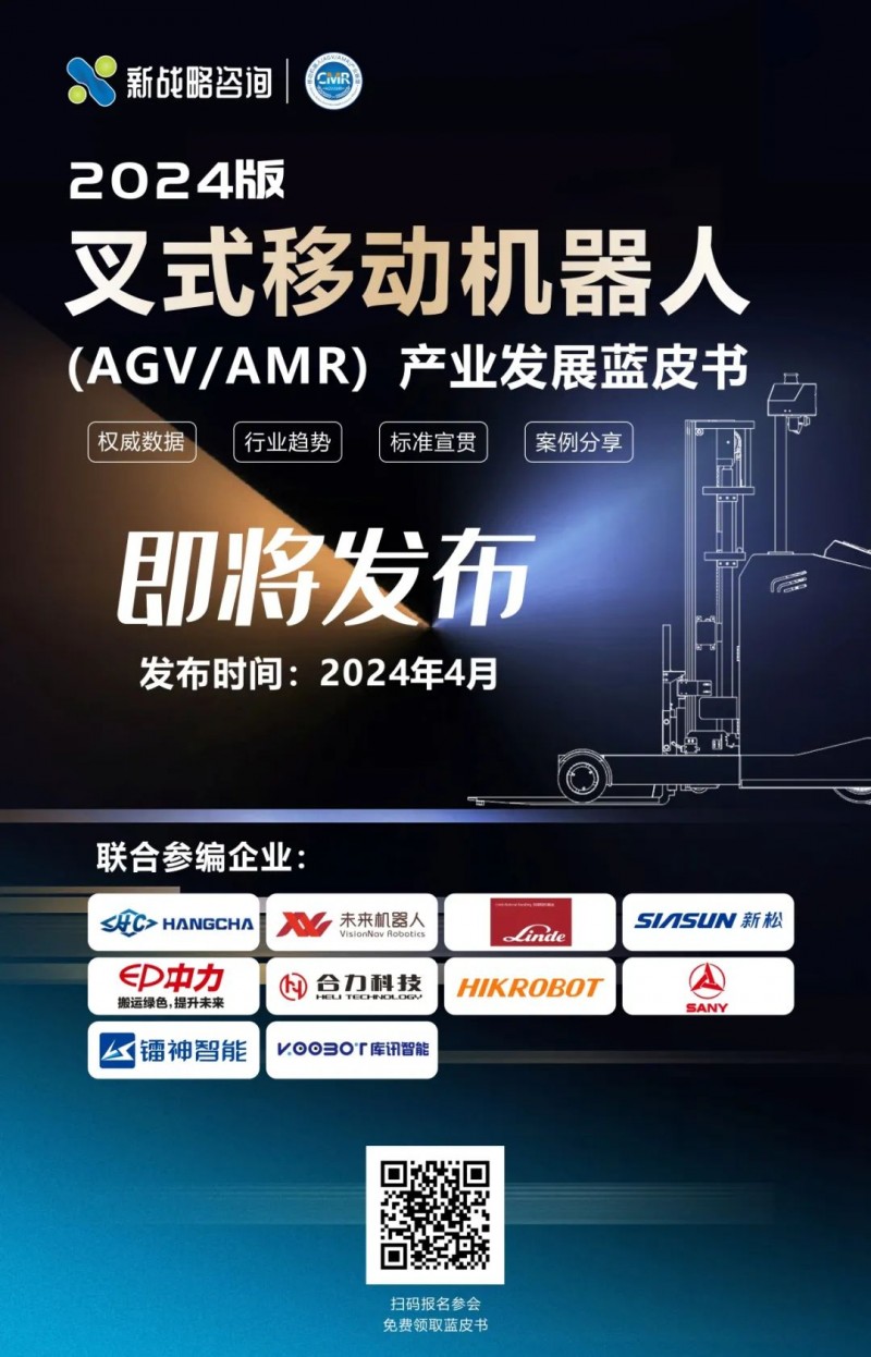 2024年,為了更好地探析當(dāng)前無人叉車市場最新發(fā)展情況及趨勢,推動無人叉車深入應(yīng)用,彰顯行業(yè)品牌力量,由CMR產(chǎn)業(yè)聯(lián)盟主編,杭叉智能、未來機器人、林德、新松、浙江中力、合力、海康機器人、三一機器人、鐳神智能、哈工庫訊等企業(yè)聯(lián)合參編的《叉式移動機器人(AGV/AMR)產(chǎn)業(yè)發(fā)展藍皮書(2024版)》將在4月舉辦“第二屆全球無人叉車峰會”上重磅發(fā)布,敬請期待!