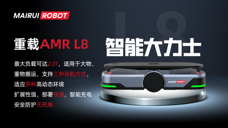 近日, 邁睿機器人隆重發布新一代潛伏式AMR產品L8,是繼2022年L5發布之后的第二款重量級產品。邁睿潛伏式移動機器人L8可適用于更多的工業制造場景,滿足重載物料及大型貨品搬運的需求。