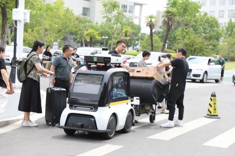 此外,還有通過在安防巡邏車后加掛拖車的方式增添貨運功能。如去年金秋大學(xué)開學(xué)之際,北京工商大學(xué)良鄉(xiāng)校區(qū)的無人駕駛巡邏車變身“運送工”幫助新生和家長將行李運送至宿舍。