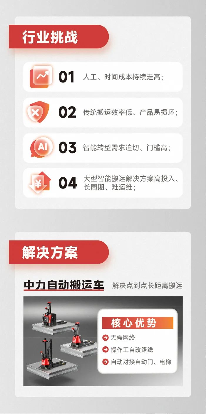 基于對(duì)市場(chǎng)的深度洞察,去年以來(lái)中力定義行業(yè)新概念——自動(dòng)搬運(yùn)車(chē),專(zhuān)注解決點(diǎn)到點(diǎn)長(zhǎng)距離無(wú)效搬運(yùn),破解用工難題。基于精準(zhǔn)高效的自動(dòng)配送,中力自動(dòng)搬運(yùn)車(chē)助力生產(chǎn)效率大幅提升!