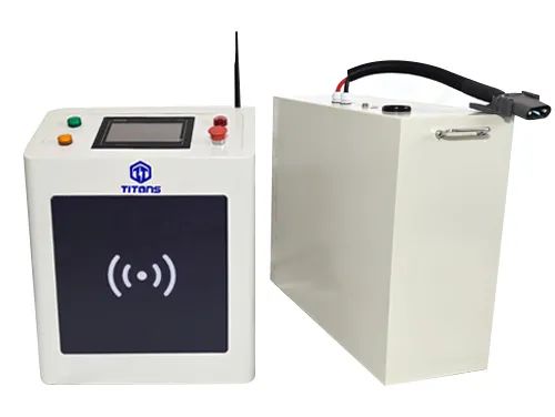 合作伙伴也攜帶了泰坦智能充電機去到展會,給新能源工業(yè)車輛以及移動機器人進行充電。