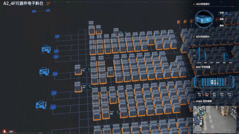為提高物料流轉效率,海康機器人通過涂布AMR、懸臂AMR、潛伏AMR、叉取AMR、夾抱式CTU進行原材料搬運、極卷搬運、極片搬運、原材料存儲、模組PACK物料上線、PACK環線裝配,搭配RCS機器人控制系統進行任務分配、調度,實現物料流轉的自動化和智能化。