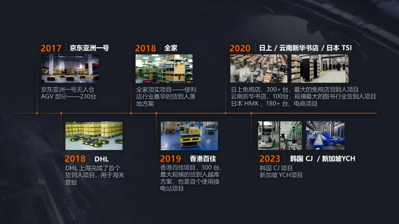 ??禉C器人堅持工業制造和商業倉配多行業并進,自2017年起便在行業內深耕,解決方案目前已在京東亞一倉、DHL、全家、香港百佳、日上、韓國CJ物流、新加坡YCH、順豐速運、中百倉儲、轉轉、良品鋪子、青島啤酒等多個項目中落地。