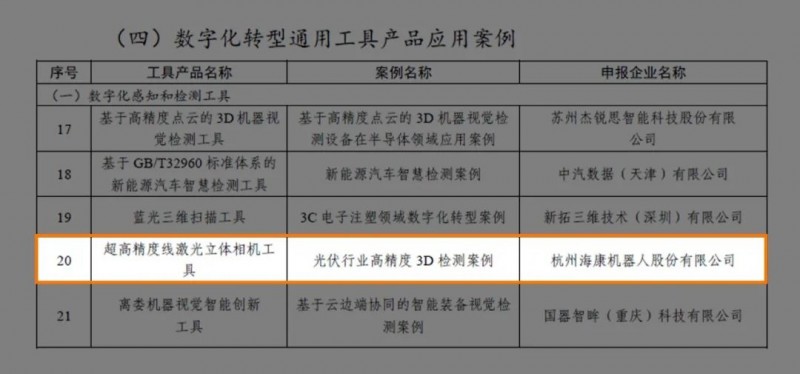 近日,工業(yè)和信息化部辦公廳公布2024實數(shù)融合典型案例名單,海康機(jī)器人“超高精度線激光立體相機(jī)工具-光伏行業(yè)高精度3D檢測案例”脫穎而出,入選其中的數(shù)字化轉(zhuǎn)型通用工具產(chǎn)品應(yīng)用案例名單。
