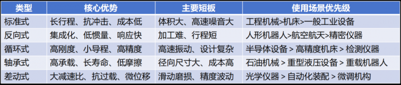 經(jīng)過(guò)長(zhǎng)期發(fā)展,行星滾柱絲杠已演化出多個(gè)結(jié)構(gòu)變體,在傳動(dòng)效率、承載能力、尺寸適配等方面形成各具優(yōu)勢(shì)的類(lèi)型。其中,通過(guò)對(duì)不同結(jié)構(gòu)形式的性能對(duì)比與工程適配性分析,目前在人形機(jī)器人領(lǐng)域得到廣泛采用的是“反向式”行星滾柱絲杠結(jié)構(gòu)。