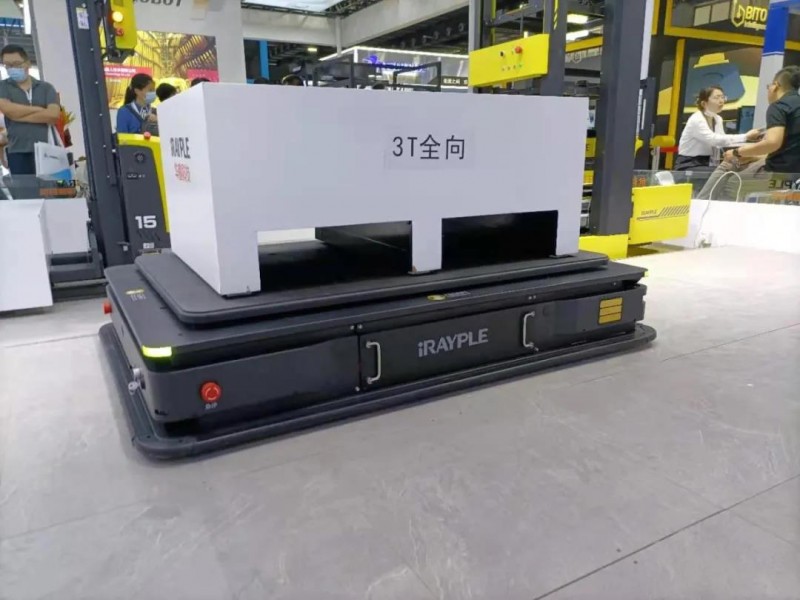 華睿科技帶來的新品——重載型AGV可全向移動,負(fù)載達(dá)3T。