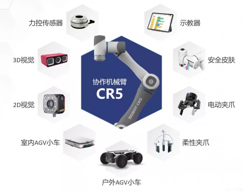 作為計(jì)劃的一部分,越疆推出了展翅、凌云1.0、凌云2.0三大套件組合,套件包括CR5協(xié)作機(jī)器人、示教器、安全皮膚、2D和3D視覺,柔性?shī)A爪、電動(dòng)夾爪、力傳感器、戶外/室內(nèi)GV小車等基礎(chǔ)單元,適配工業(yè)、商業(yè)、醫(yī)療、農(nóng)業(yè)等多種場(chǎng)景應(yīng)用創(chuàng)新方案的搭建。