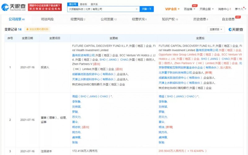 天眼查App顯示,近日,倉儲(chǔ)物流自動(dòng)化解決方案服務(wù)商“Syrius炬星”關(guān)聯(lián)公司大揚(yáng)智能科技(北京)有限公司發(fā)生多項(xiàng)工商變更,注冊(cè)資本增至約205.9萬人民幣,增幅超19.42%;股東新增字節(jié)跳動(dòng)關(guān)聯(lián)公司北京量子躍動(dòng)科技有限公司等。