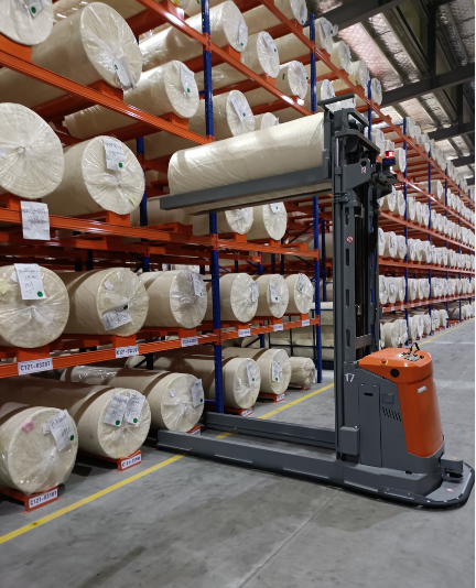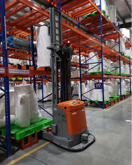 雙工位平衡重叉式AGV屬于國內(nèi)首創(chuàng),可同時插取兩個托盤,托盤載重可達(dá)3噸,并且其配備了3D相機識別系統(tǒng),在托盤直接堆垛存儲場景中,可識別托盤對地高度,輔助判斷貨叉提升高度,實現(xiàn)托盤準(zhǔn)確搬運,3層托盤直接堆垛,托盤堆垛高度可達(dá)6米左右,采用密集存儲的方式。對于百威啤酒這一類的易碎品,更加的安全可靠。