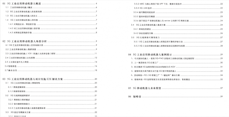 本藍(lán)皮書從5G工業(yè)應(yīng)用移動機(jī)器人的發(fā)展背景出發(fā),給出5G工業(yè)應(yīng)用移動機(jī)器人的定義和價值,分析各種應(yīng)用場景對網(wǎng)絡(luò)的需求,從架構(gòu)、網(wǎng)絡(luò)、終端提出5G工業(yè)應(yīng)用移動機(jī)器人可落地的解決方案,闡述可靠性能力,并給出各個應(yīng)用場景落地實施的建議,幫助產(chǎn)業(yè)鏈各方共同推進(jìn) 5G 智慧物流發(fā)展。