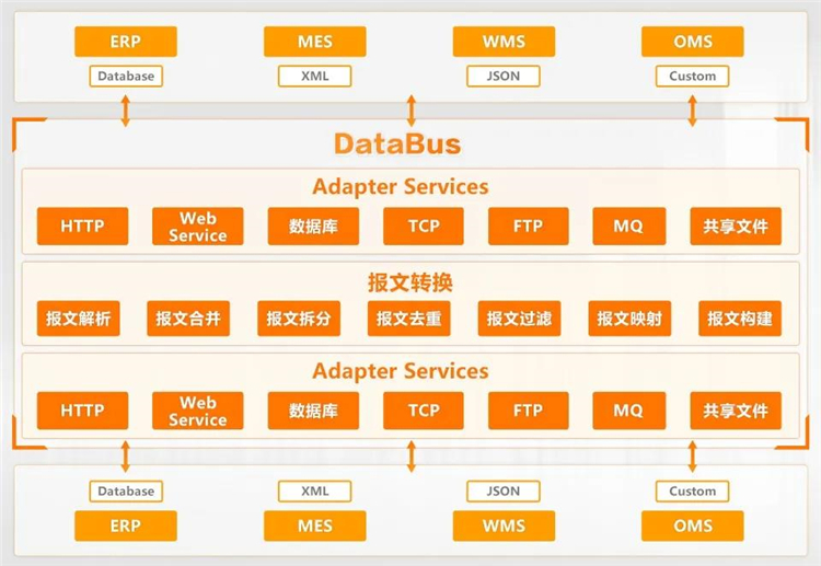 DataBus提供多個(gè)業(yè)務(wù)系統(tǒng)之間數(shù)據(jù)交互能力,支持HTTP/HTTPS/WebService/數(shù)據(jù)庫(kù)中間表/FTP/共享文件夾等多種通訊方式,支持JSON/XML等多種報(bào)文格式。