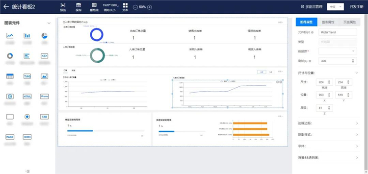 DataView提供豐富多樣的元件庫(kù),支持用戶(hù)自定義配置頁(yè)面布局,關(guān)聯(lián)數(shù)據(jù)源后可動(dòng)態(tài)展示可視化頁(yè)面。