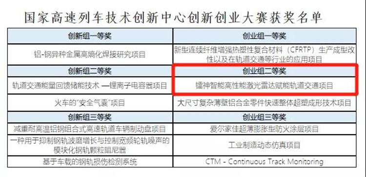 核心提示:鐳神智能以高性能激光雷達賦能軌道交通項目榮膺該創新創業大賽的創業組二等獎。