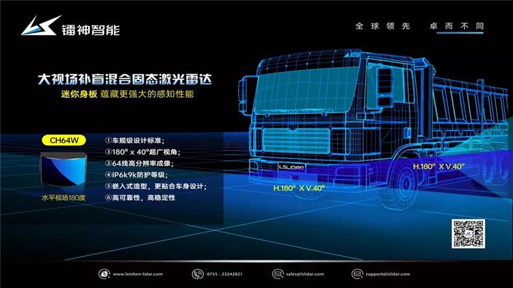 鐳神智能另一重磅新品——大視場補盲激光雷達CH64W,作為專為掃除盲區(qū)設計的產(chǎn)品,CH64W可應用在汽車、機器人、AGV等領域的行駛盲區(qū)監(jiān)測,其擁有180°x 40°的超廣水平視場角,測量精度精確至±3cm,能夠高效識別近距離范圍內(nèi)的障礙物。與鐳神智能其他功能的激光雷達組合搭配,適配不同應用需求,提供更精確、全面的監(jiān)測感知。